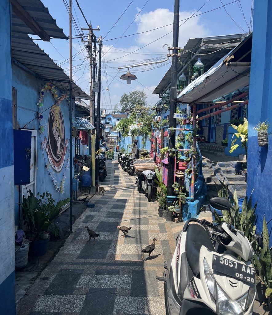 I traveled further east to Malang, a city that caught my eye due to its completely blue-colored neighborhood. That was a surreal experience – like being inside a painting, an artwork, a life-size museum exhibition. However, the more memorable event was as I was walking down a trail, I looked up to realize I was walking under webs and webs of the biggest spiders I have seen in my life. They were bigger than an average human hand just… hanging out above me. I didn’t run, but I did walk faster out of that trail than I’d ever walked.