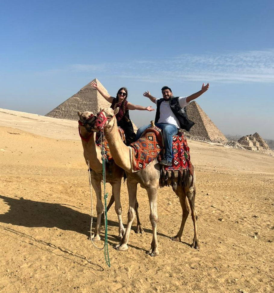 Cairo is never quiet. My sleep was often restless, interrupted by constant noise. Each morning, Mando brought me breakfast (falafel and eggs) and detailed the plan for the day. Together, we rode camels around the Great Pyramids of Giza, stood before the Sphinx, visited the Grand Egyptian Museum – the largest museum in the world dedicated to a single civilization – and saw King Tut’s mask. We cruised down the Nile River. We attended wedding celebrations.