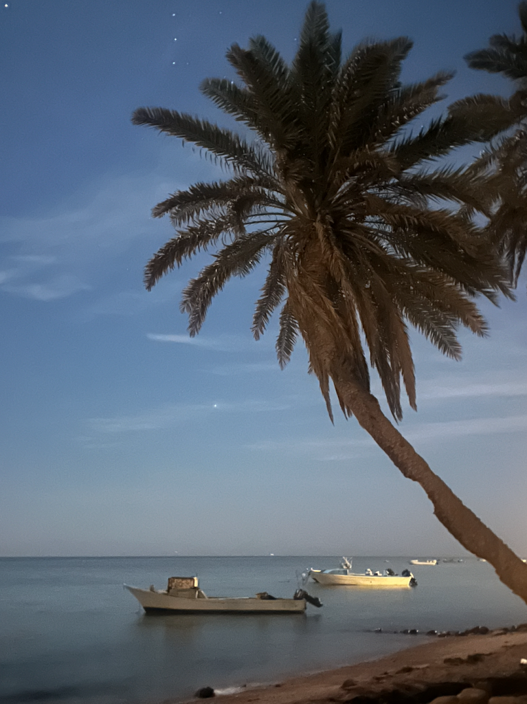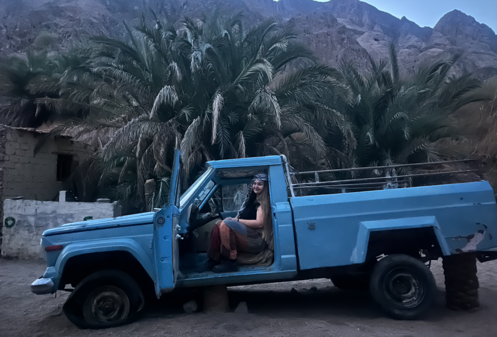 Immediately upon stepping out into the Nuweiba port, I was swarmed by taxi drivers shouting prices and destinations. I waved them off, looking for one person: Ahmed. He was my Airbnb host in Nuweiba and offered to pick me up himself. I finally spotted him and climbed into the wooden bed of his pickup truck. As we drove toward his seaside home in the middle of the night, the cool, salty air hit my face and I felt excited to see what Egypt had to offer.