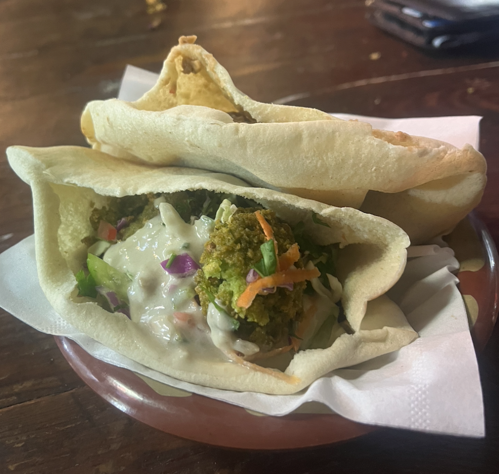They also showed me where to eat authentically. Every morning and evening, I’d buy three pita sandwiches: two with falafel and cheese, one with beans and eggs. Delicious, and enough to keep me full for hours. The total cost? 75 cents. Total, not each.