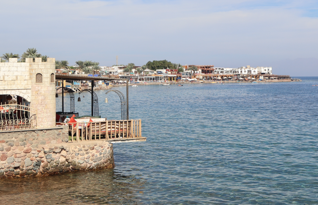 After a few nights, I was in the pickup truck bed again, almost late to catch a bus to Dahab. The ride was only an hour, but still memorable – like when I looked up from my phone to realize the bus was driving on the wrong side of the highway for several minutes. Or when the driver lit a cigarette without opening a window, slowly fogging the front half (my half) of the bus with smoke. This is Egypt, though.